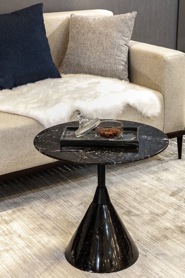 – Mặt bàn: Đá tự nhiên màu xanh, đen vân mây.