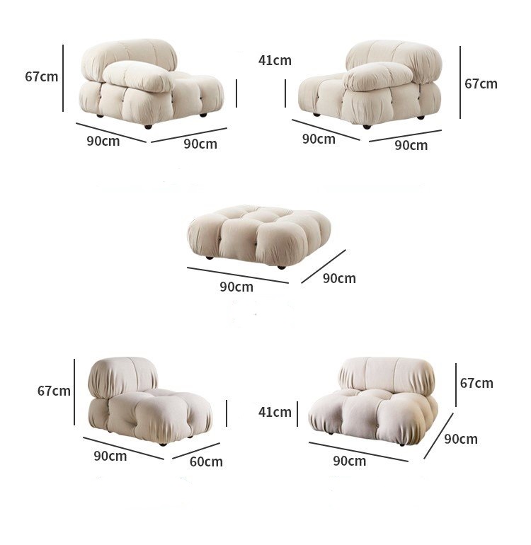 Lớp đệm polyurethane mềm mại tạo thành thiết kế capitonné đặc trưng vẫn không thay đổi, vẫn được sản xuất với hệ thống cáp, móc và vòng sáng tạo do Bellini tạo ra vào năm 1970, xác định kiểu dáng và mô đun đặc trưng. Trên thực tế, nhờ có các thanh giằng và vòng đệm, các mô-đun có thể được tháo rời và kết hợp lại theo ý muốn, cho phép ghế sofa thích ứng với thị hiếu đang phát triển và nhu cầu năng động của những người sử dụng nó. Bằng cách móc và tháo ghế, tựa lưng và tay vịn, bạn có thể thay đổi ý hình dáng sofa bao nhiêu lần tùy thích, di chuyển và thiết kế lại không gian.