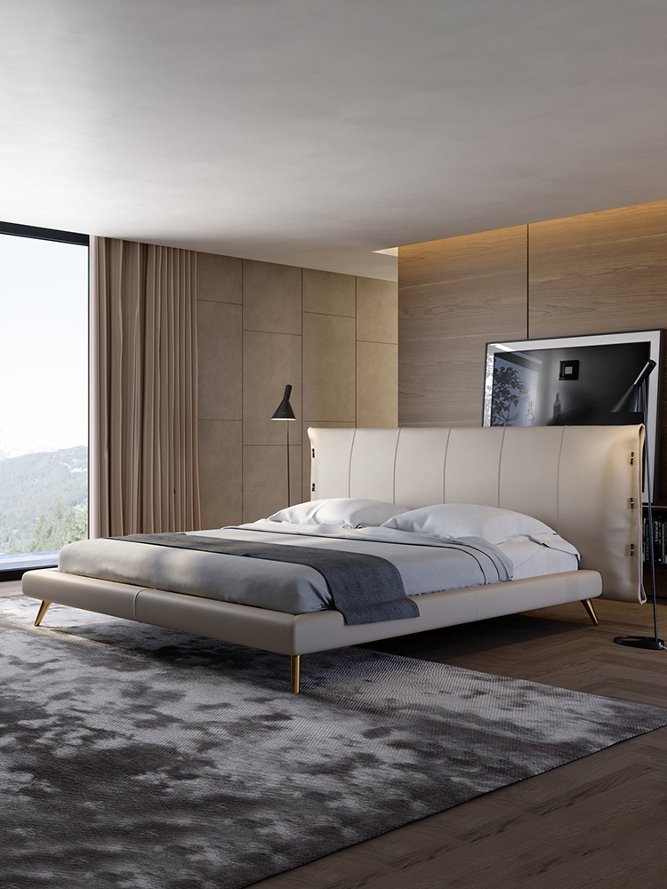 - Đầu giường được bọc bằng da Napa
