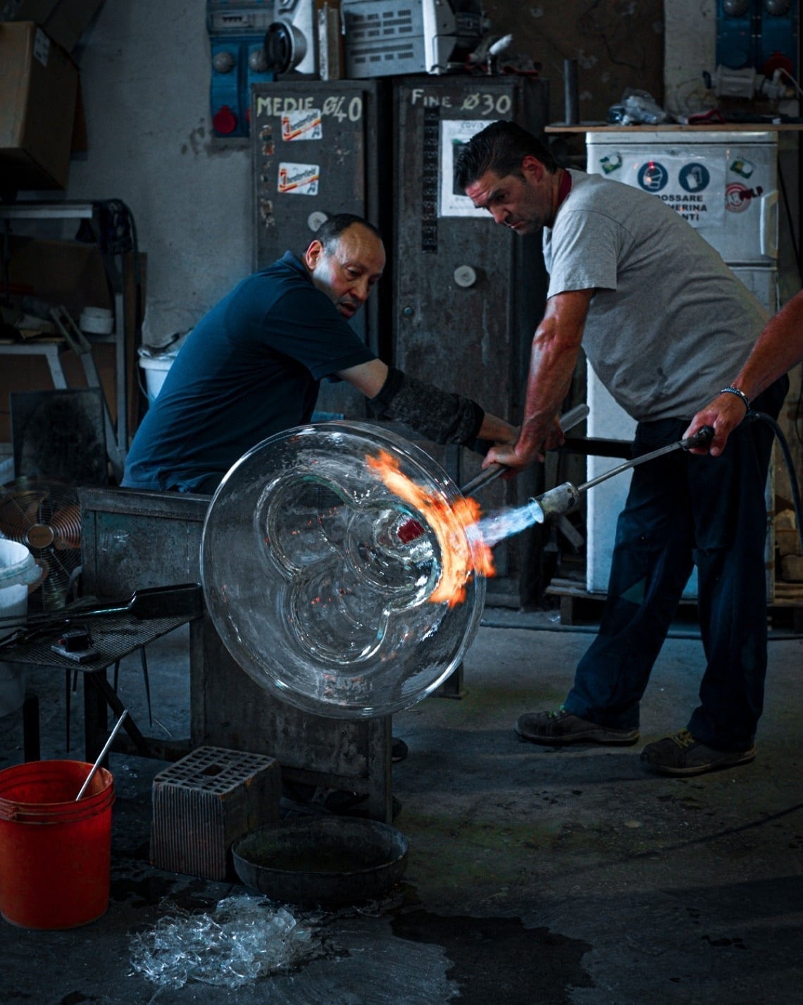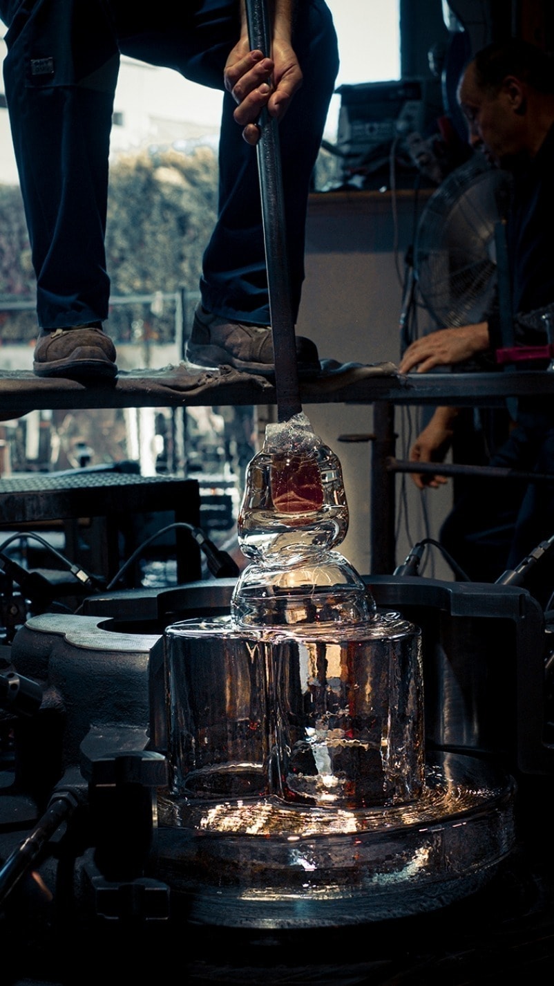 Soda được sinh ra lộn ngược, với một luồng không khí. Nó nặng 20 kg, được ba thợ thủy tinh bậc thầy thổi, kéo ra và tạo hình. Kết quả là một thể tích thủy tinh duy nhất với ba cánh hoa lớn tạo thành thân cây. Ở Soda, thủy tinh dao động: bề mặt cứng rắn, được mài giũa của nó phá vỡ độ trong suốt của nó để mang lại tính thẩm mỹ nguyên thủy. Đây là giá trị nghệ thuật được cấp cho một sản phẩm công nghiệp.