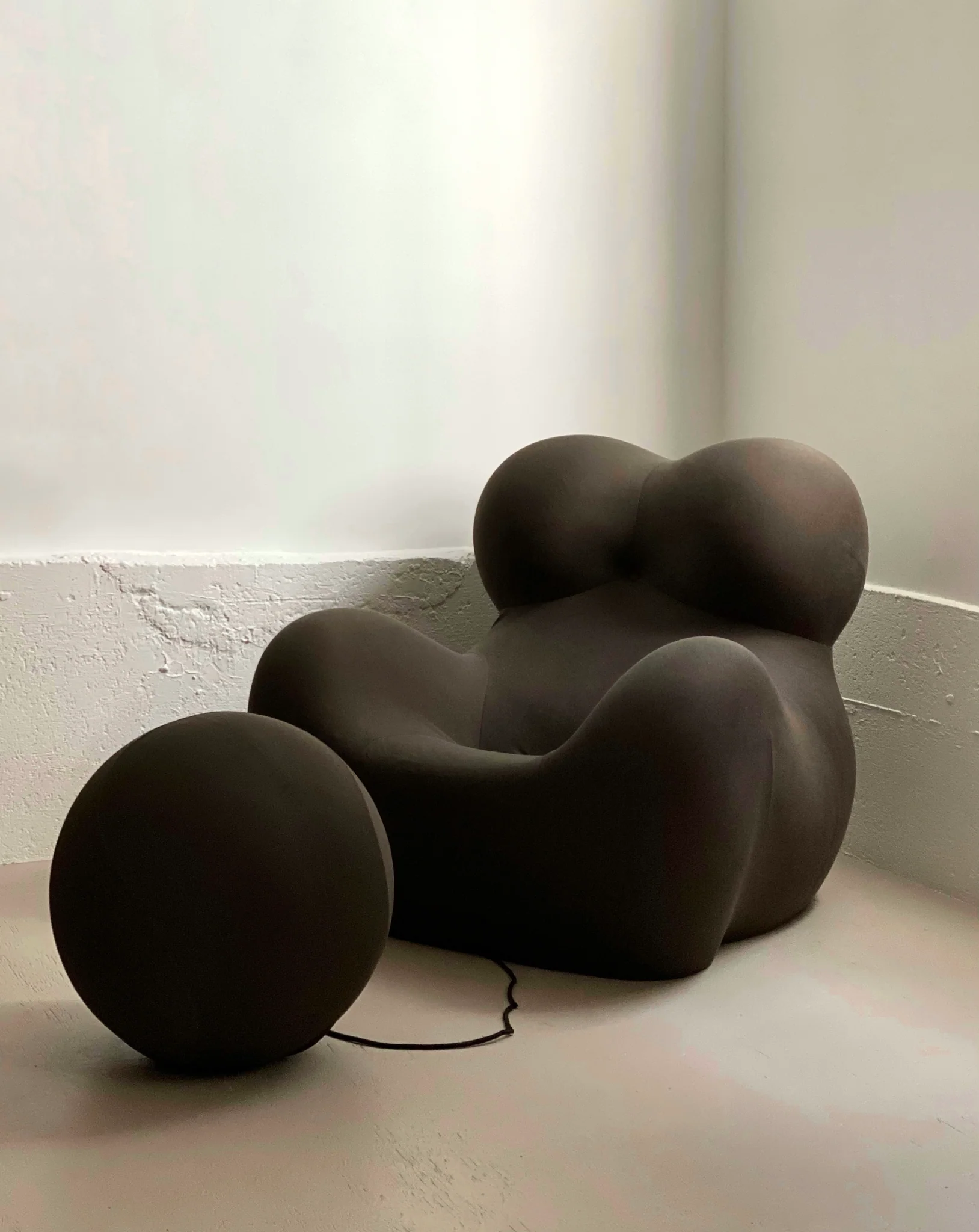 SỰ THOẢI MÁI BIỂU TƯỢNG – Chiếc ghế, được thiết kế để bao bọc người trông trẻ, là phép ẩn dụ cho một chiếc tử cung lớn thoải mái, phản ánh sự nhạy cảm về thế giới với tính biểu tượng, sự mỉa mai và vẻ đẹp.